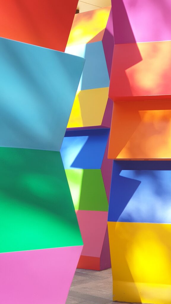 The collection includes five sculptural columns of varying irregular shapes and heights, each adding a unique visual element. In addition to the sculptures, 30 hexagonal artworks are embedded into the concrete benches throughout the site, arranged in a pattern that further enhances the aesthetic. Together, these artworks form a cohesive ensemble designed to integrate seamlessly into the space, infusing the area with vibrancy and colour. Their presence not only enriches the environment but also fosters a sense of place, encouraging a deeper connection with the site.