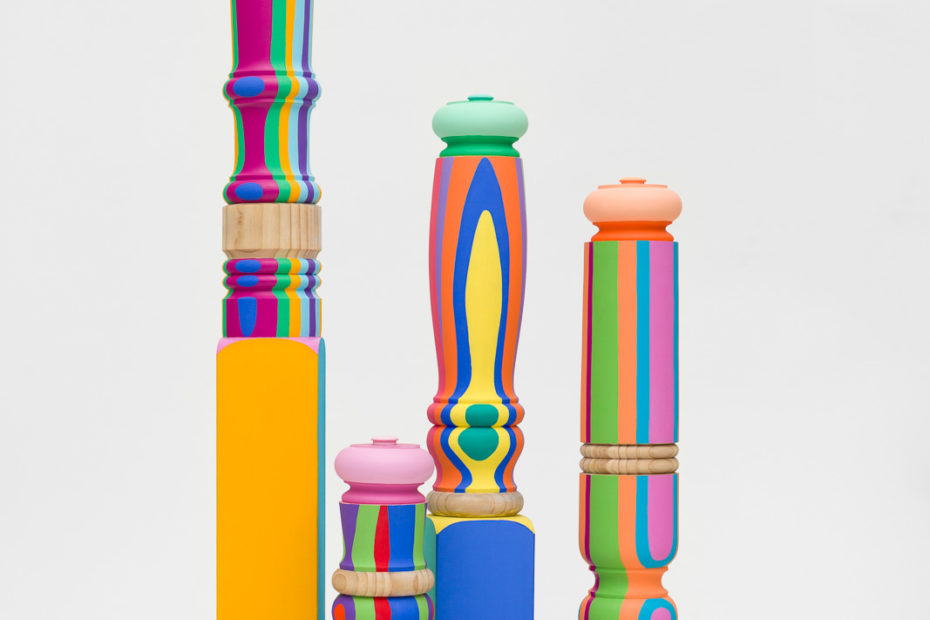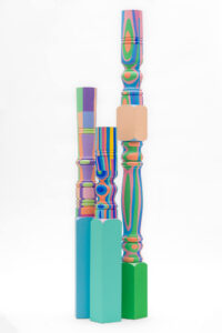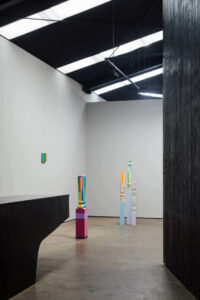 Acrylic on wood, 2 posts: 180 (h) x 25 x 25 cm & 160 (h) x 25 x 25 Photo credit: Richard Glover Photography