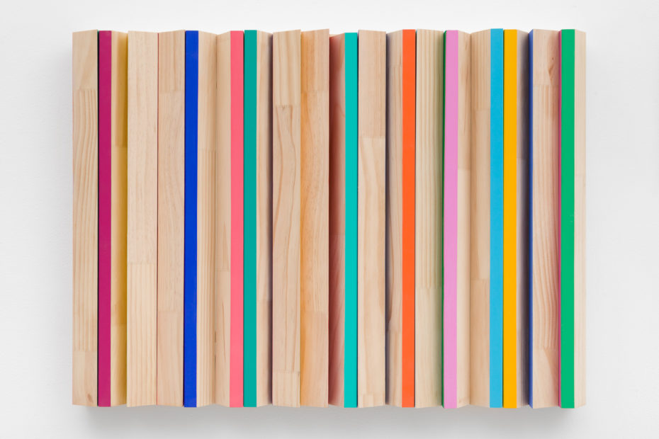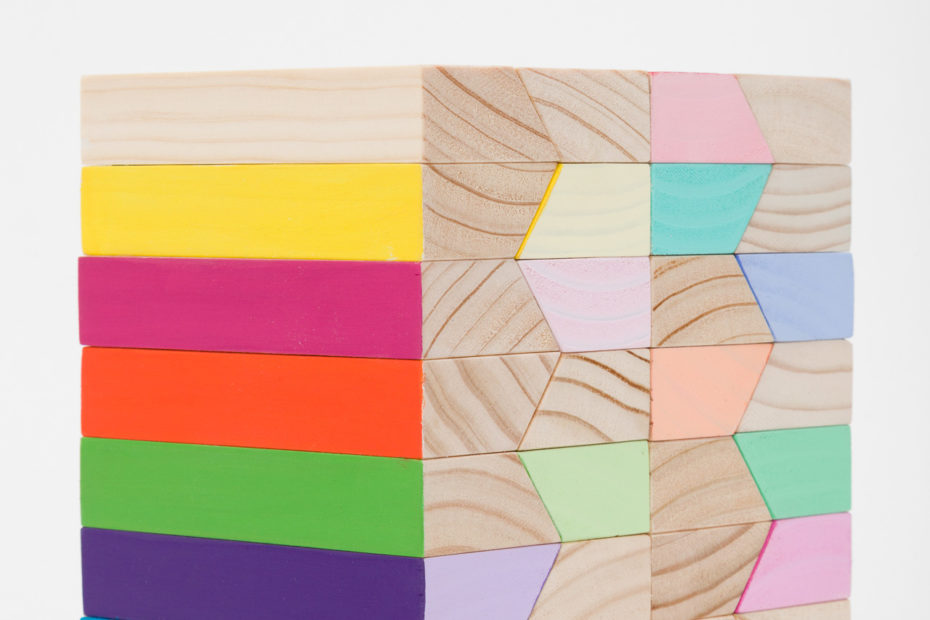 James Dorahy Project Space presents Nuha Saad: Imagined Constellations. Saad is interested in form and colour, order and repetition. Continually interrogating domestic space, the Sydney-based artist’s past work has incorporated the finer details of the home, like cornices and skirting boards, commenting on the trimmings we add to the necessities. Imagined Constellations features a series of wooden blocks, some painted, some not. The poetry is in their constellation – patterns and forms emerge from Saad’s placement of the pieces, and also from the wood itself. The cross section of the wood is like a thumbprint, at once individual and universal. As the title suggests, the arrangement of the forms here are guides to something greater in our universe.