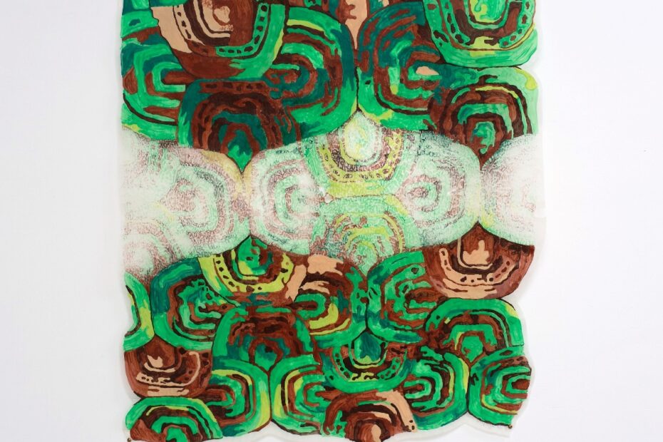For Our Lucky Country, Saad has used her explorations of the relationship between colour, territory and cultural identity to consider what happened in Cronulla in December 2005. Colour is not only a racial signifier; it also plays a large role in designations of territory and identity, being one of the key elements of maps and, of course, national flags, where the emotive power of colour is mobilised with particular virulence. Saad brings all these associations together in her attempt to ‘re-map’ the site of the riots, to go over the territory, to symbolically shift the violent energies that had cathected onto those places that for many had held fond memories. Her large drawings, executed on tracing paper to capture the sense of a non-ending process of addition and erasure that can be approached from either side, represent a revised and revisited Cronulla, where the past is still visible but does not hold the future captive. Rendered in the colours of both the Lebanese and the Australian flags, Saad’s ‘map’ offers an alternative view of this territory, as a space of possibility and contingency. This Cronulla is a place where cultural identity is not fixed and instantly identifiable, but supple and nuanced, not unlike Saad’s own experience of growing up Australian.