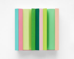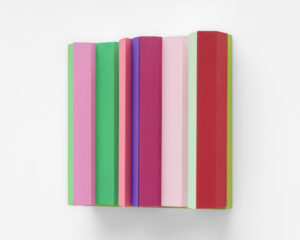 In her latest exhibition, Colour in Form, Nuha Saad continues her fascination with the ornamental and the architectural. Through investigations in colour and form, Saad presents a new body of sculptural floor and wall works in an expanded chromatic palette. Forgoing her usual high-key, vivid colour spectrum Saad instead turns to a pared back palette and tertiary hues. To this end, although solid to the touch, Saad’s sculptures appear ethereal – as if floating in space. The works stand their ground, autonomous in the time and space of the gallery, welcoming viewers into the work as new conversations and experiences are drawn out.